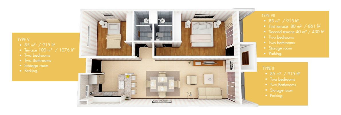 • Property Size: 85 m2